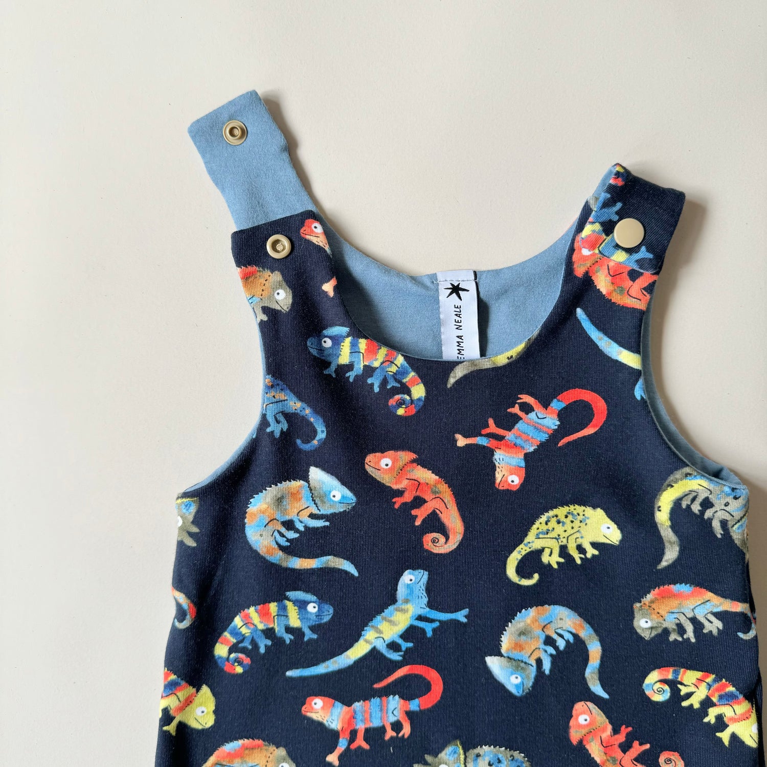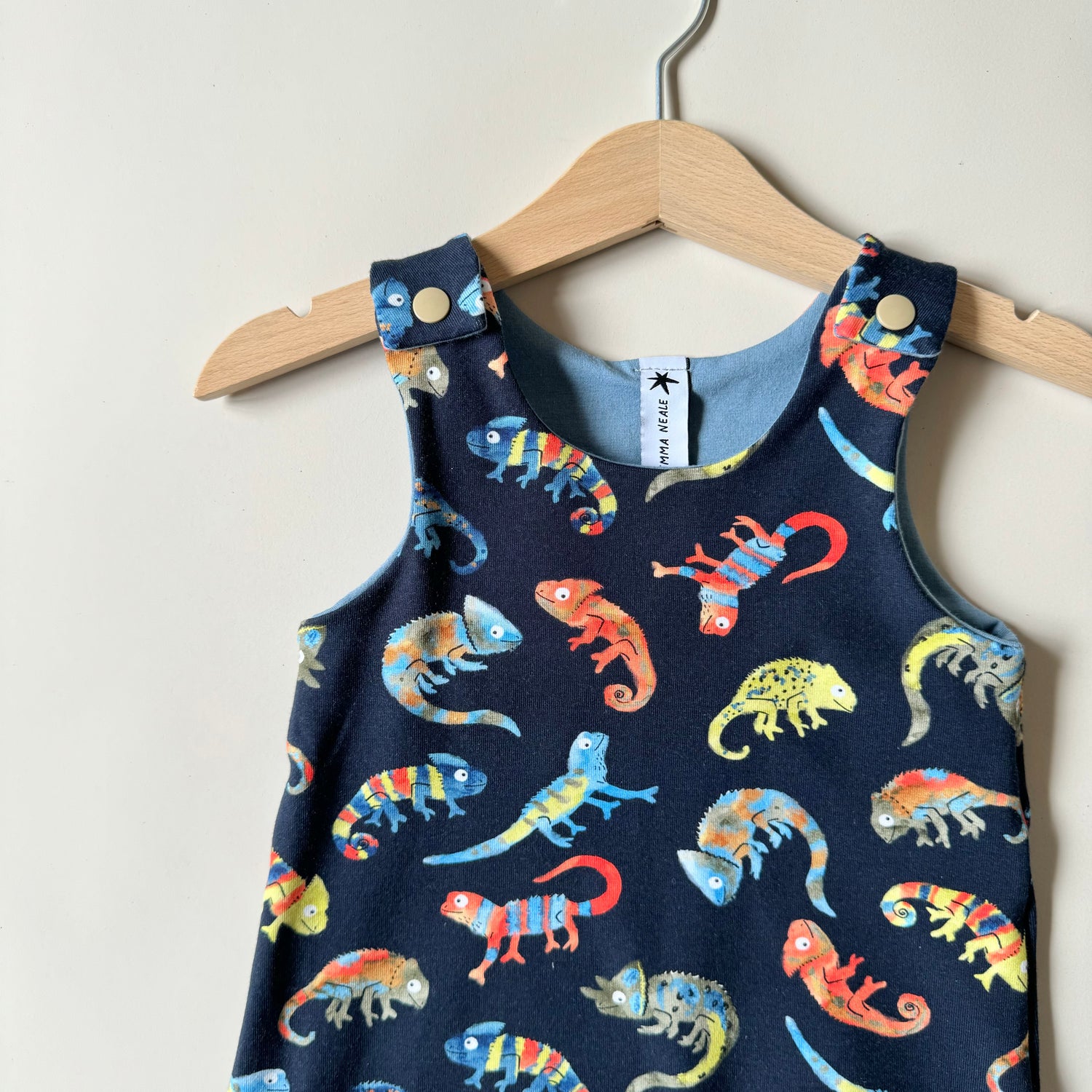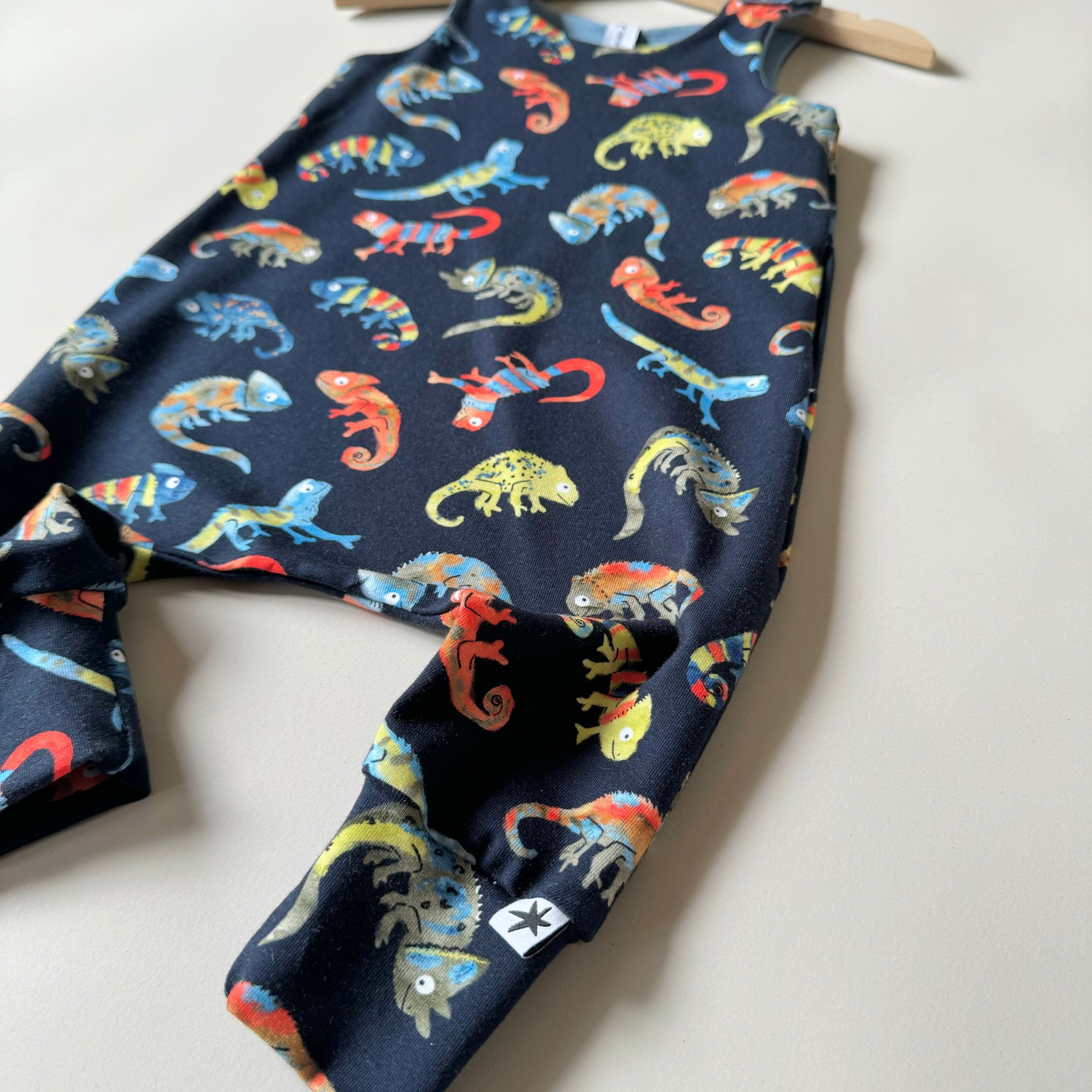 This cool harem romper is designed to be a loose fit and comfortable, easy for baby to wiggle, crawl or walk around in! The fabric is super soft and of the highest quality so lovely against even the most delicate skin. Finished with coordinating snap fasteners on the shoulder.