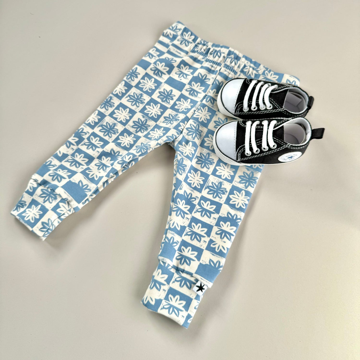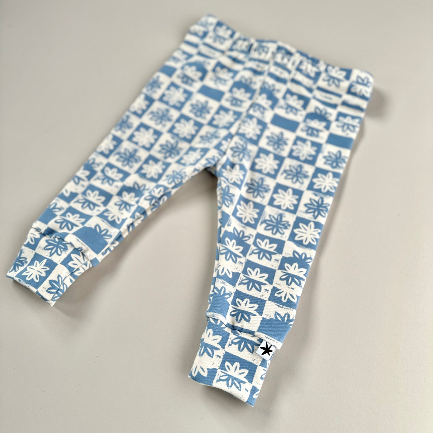 Gorgeous organic super-soft baby leggings in designer organic cotton jersey. Finished with cool little cuffs in and stiff waist elastic so they can't wriggle off!