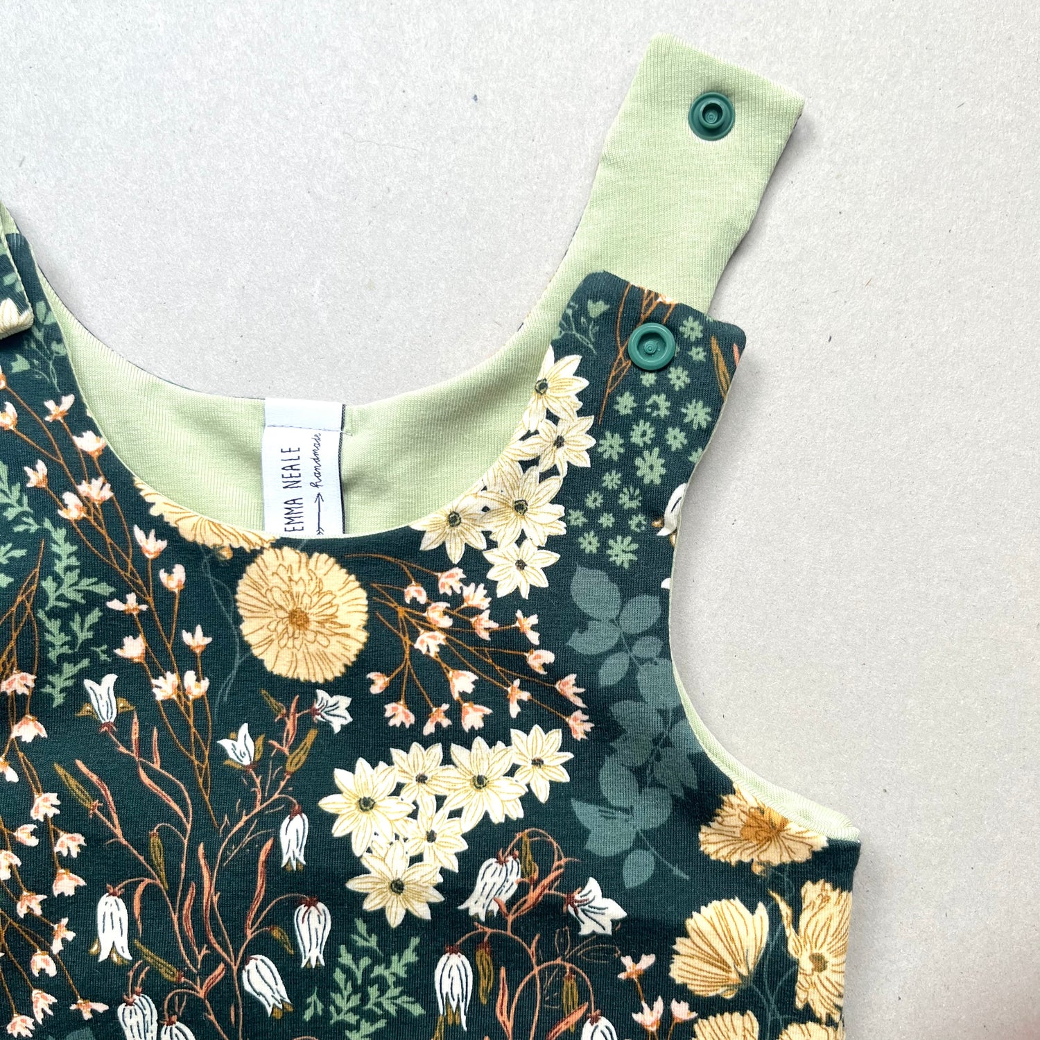 This cool harem romper is designed to be a loose fit and comfortable, easy for baby to wiggle, crawl or walk around in! The fabric is super soft and of the highest quality so lovely against even the most delicate skin. Finished with coordinating snap fasteners on the shoulder.