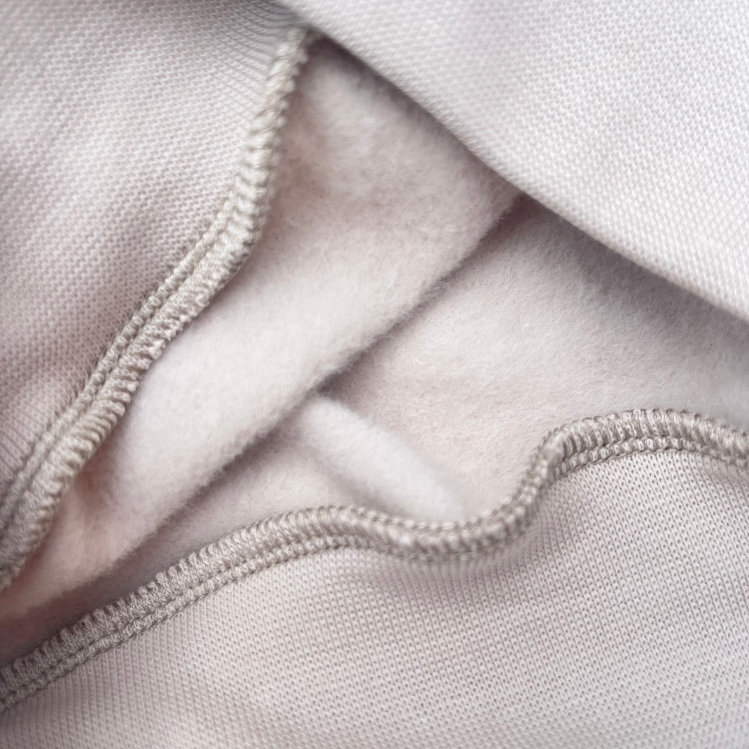 Our sweatshirts are made of high quality cotton terry fabric beautifully soft on the inside. Weight is that of a regular sweatshirt - heavier than our T-shirts. Cuffs are roll up-able, neck is stretchy and a touch wider than our T-shirts.