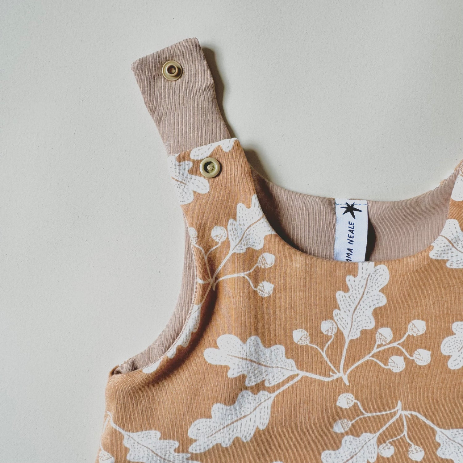 This cool harem romper is designed to be a loose fit and comfortable, easy for baby to wiggle, crawl or walk around in! The fabric is super soft and of the highest quality so lovely against even the most delicate skin. Finished with coordinating snap fasteners on the shoulder.