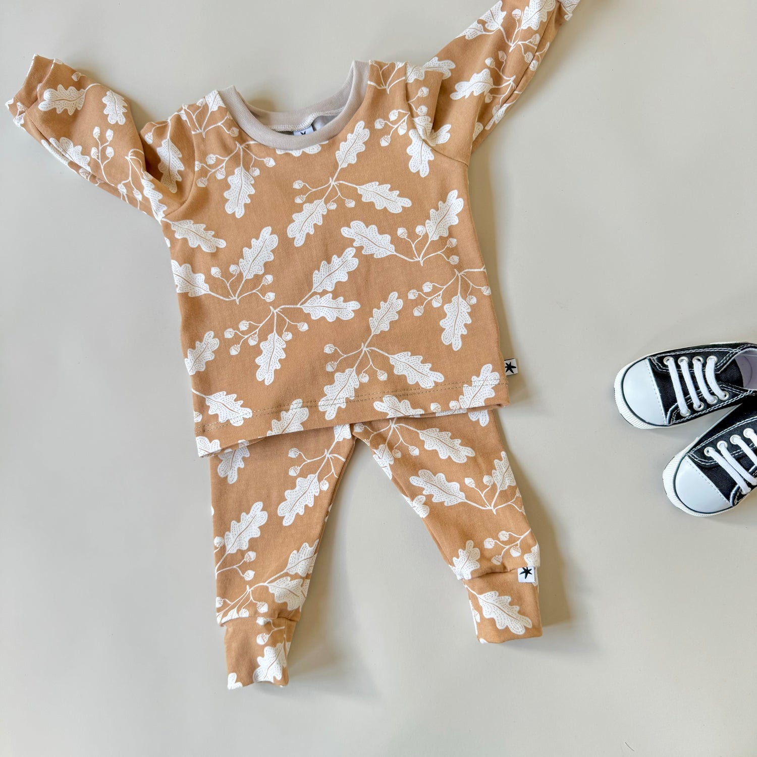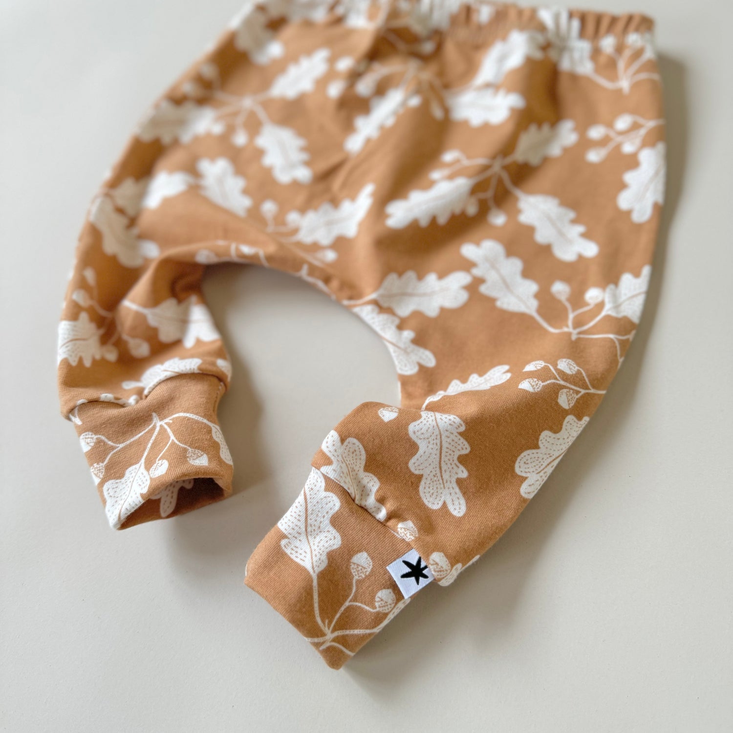 Gorgeous organic super-soft baby leggings in designer organic cotton jersey. Finished with cool little cuffs in and stiff waist elastic so they can't wriggle off!