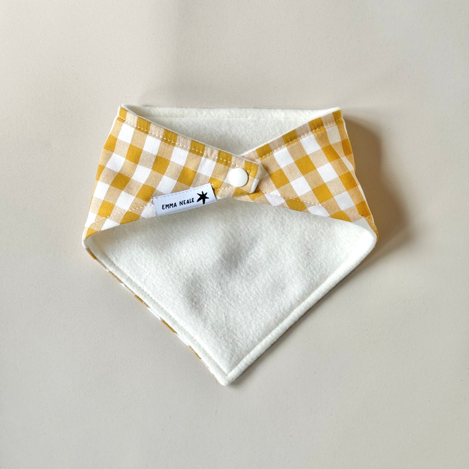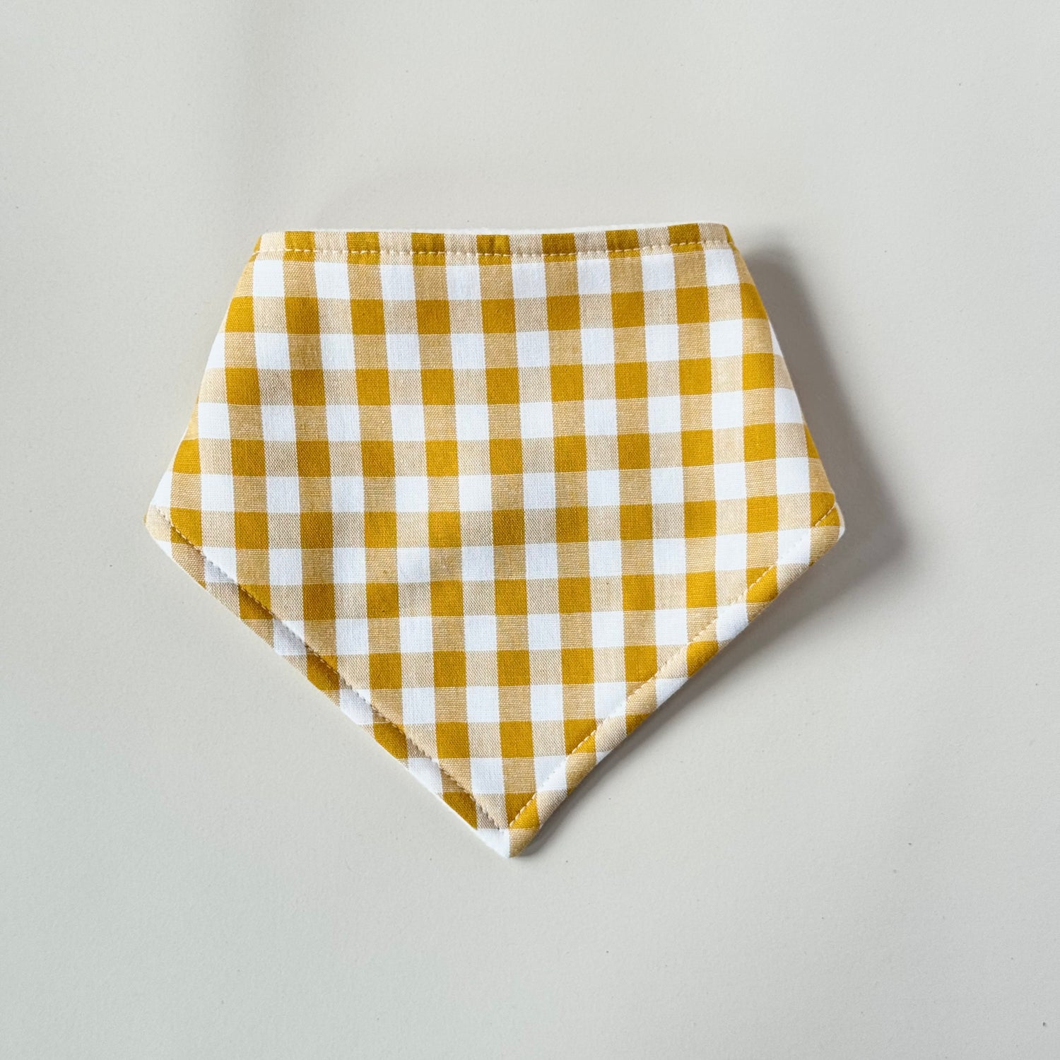 Super cute ochre yellow check bandana bib.
