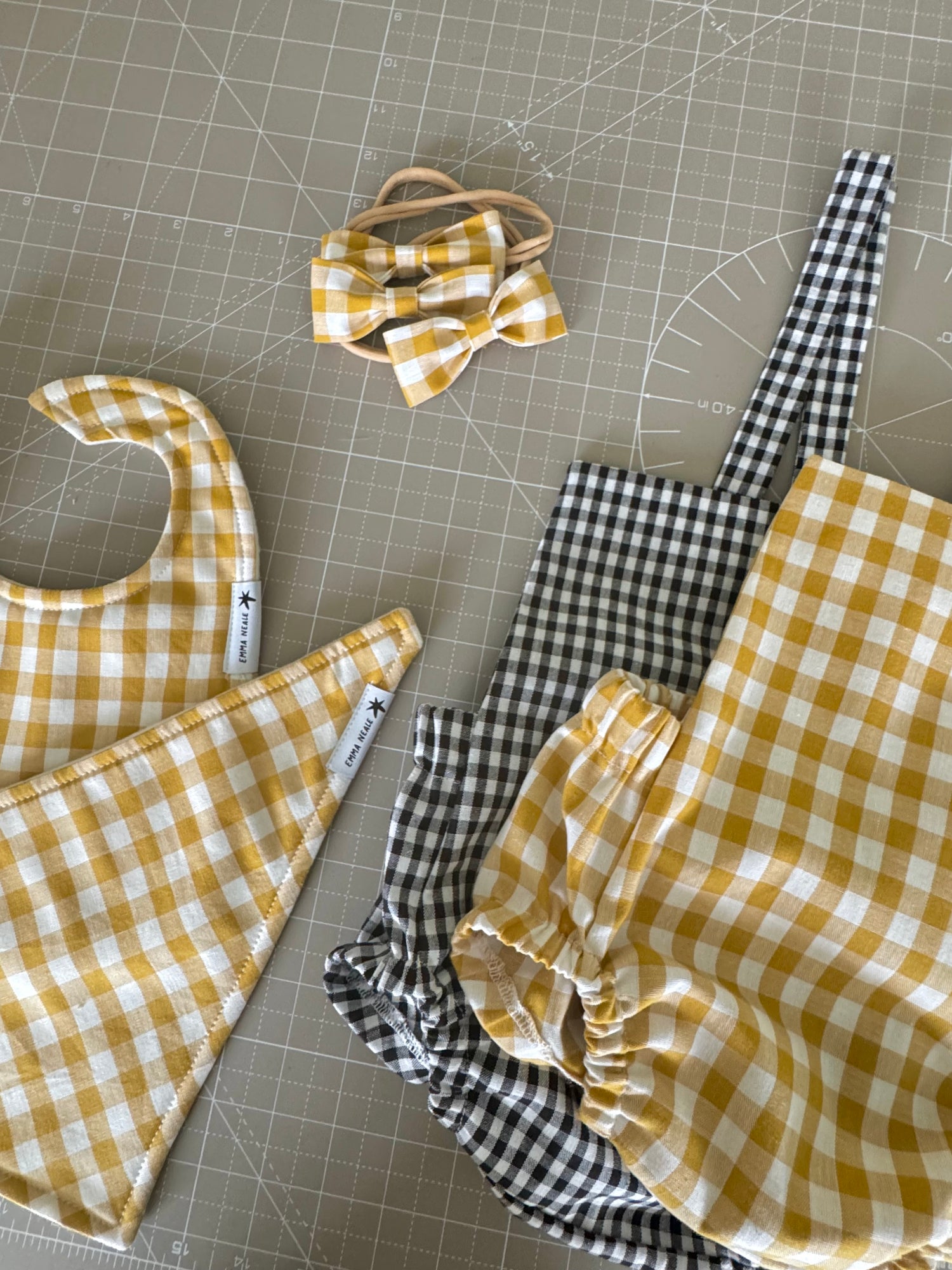 Each bib is 15 x 8 inches (38.1cm x 20.3cm), with 14 inches around the neck (35.5cm).
