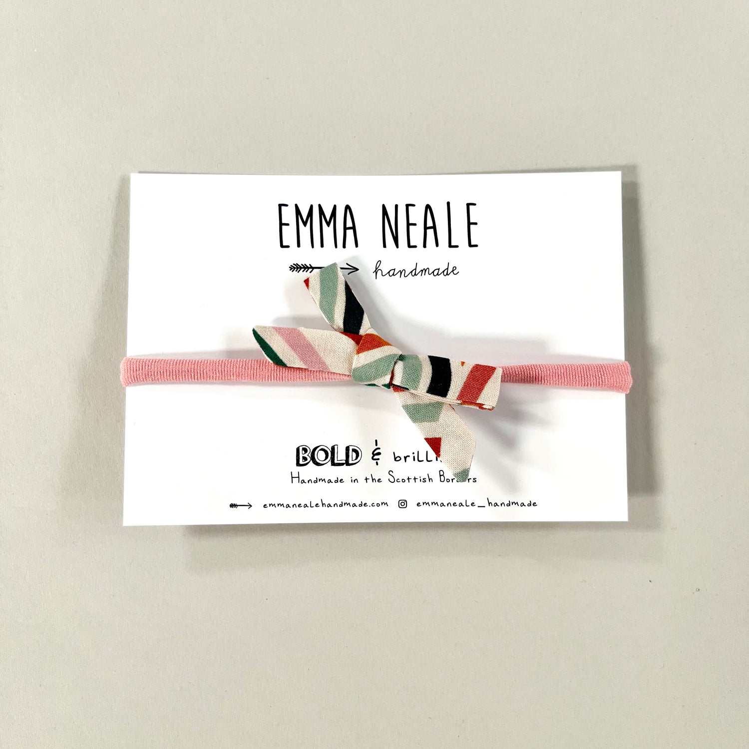 Our Orla Bows are in the sweet traditional style; they look just like little tied ribbons . The band is silky soft - made from nude coloured nylon.