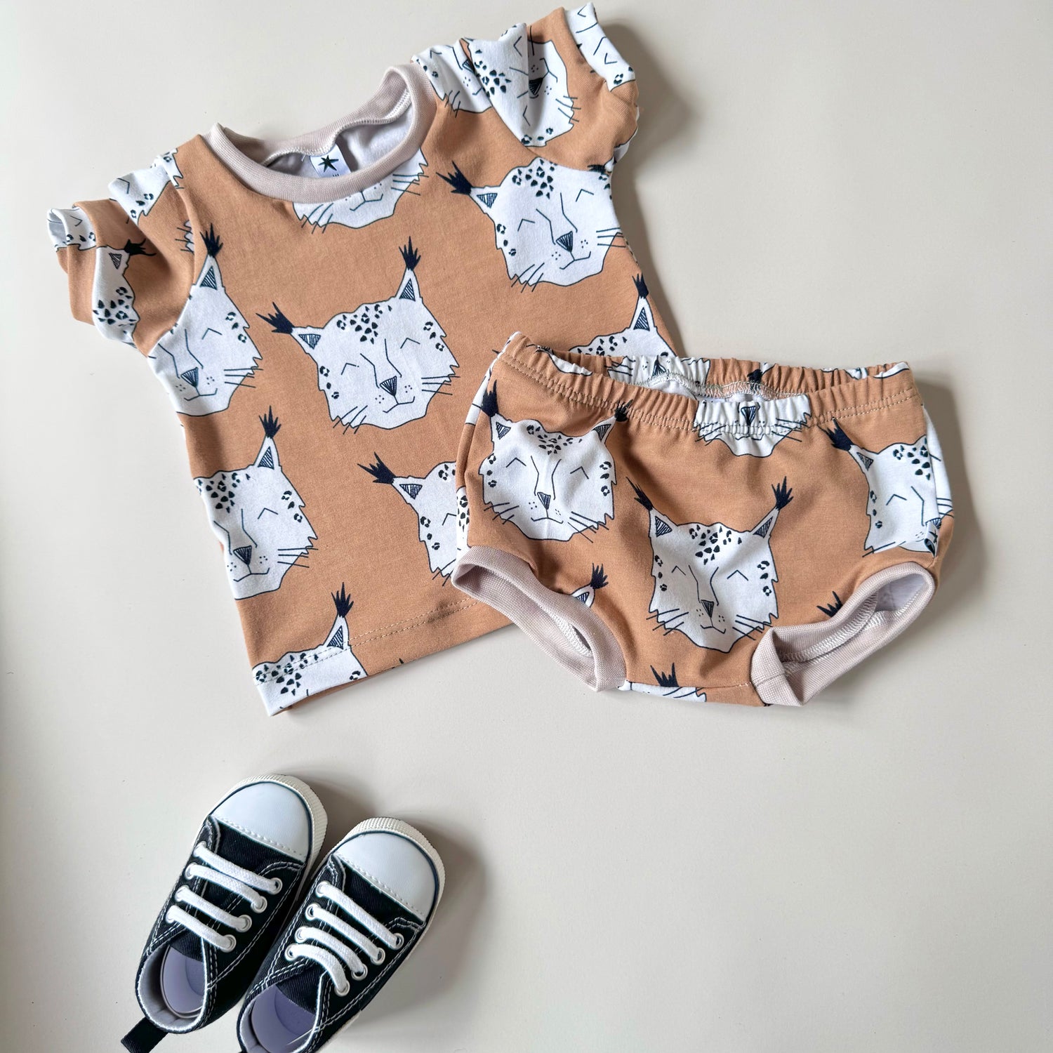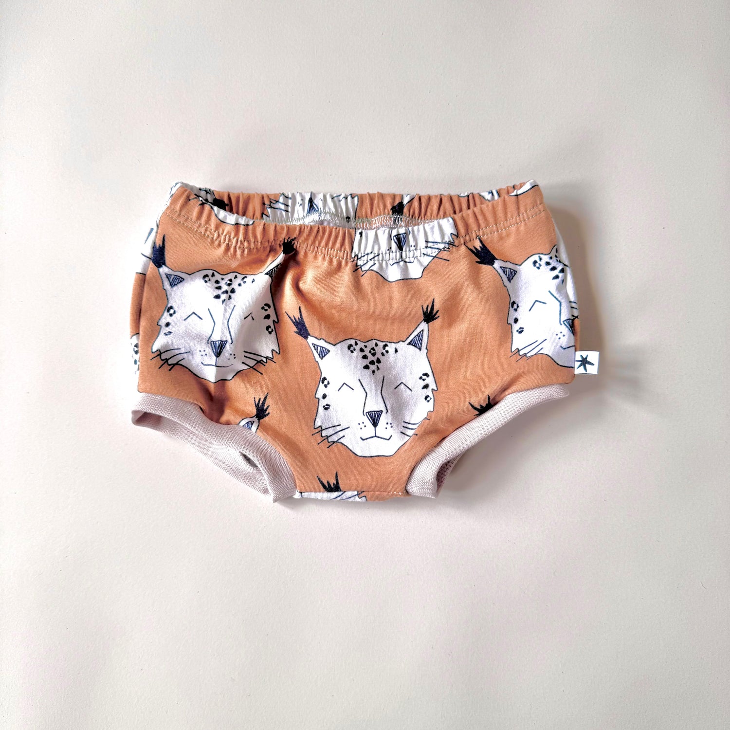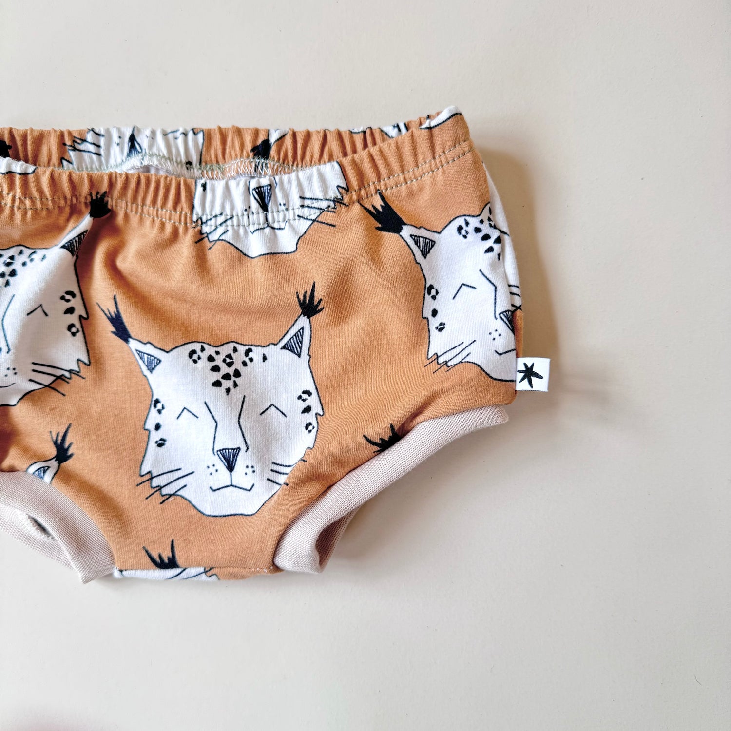 Super cute organic bummie shorts in tiger fabric printed for us in the UK..