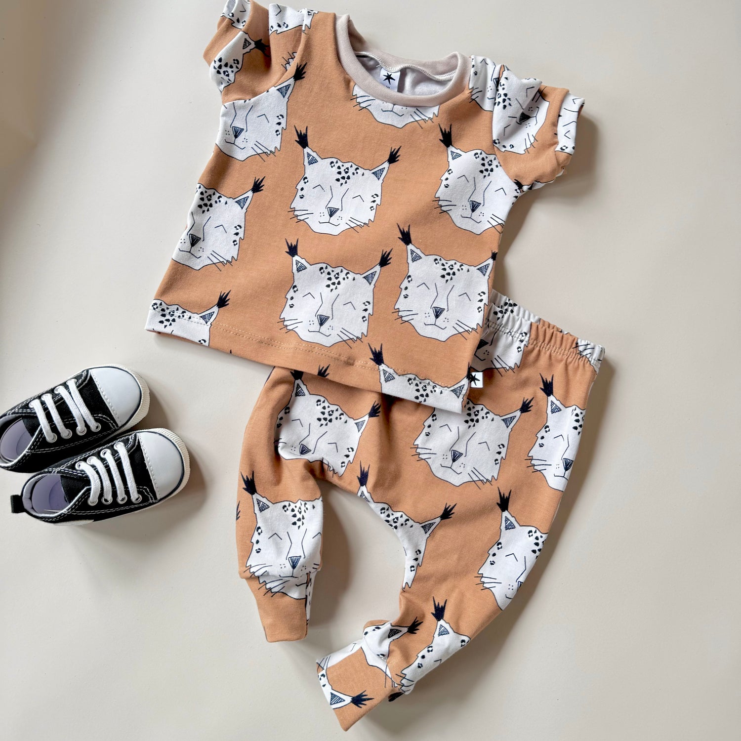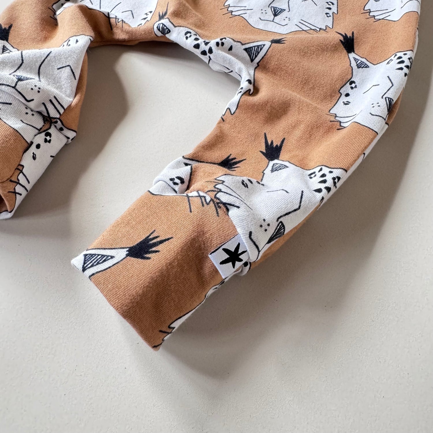 Gorgeous organic super-soft baby leggings in designer organic cotton jersey. Finished with cool little cuffs in and stiff waist elastic so they can't wriggle off!