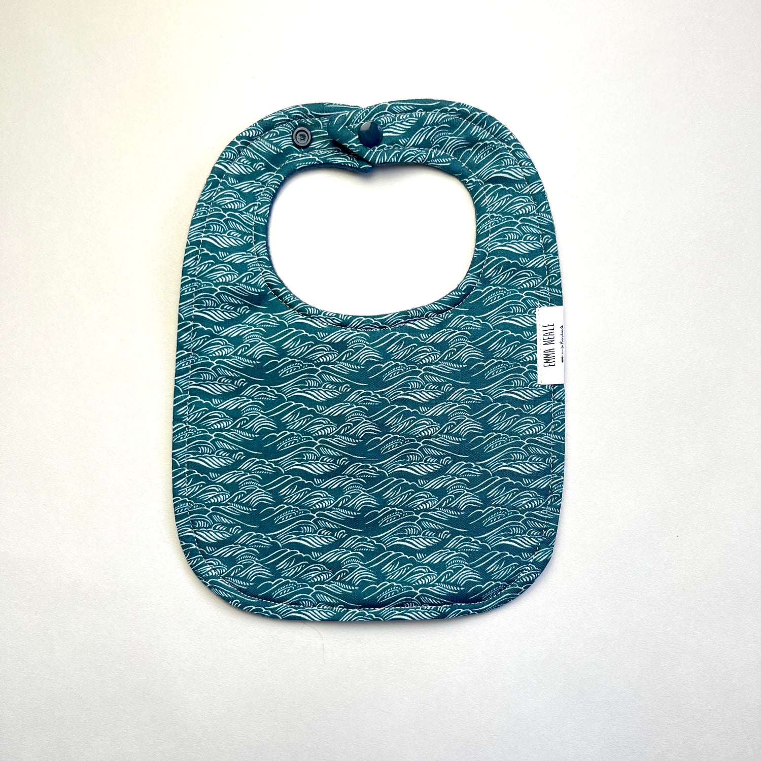 Each bib is backed in super absorbent polyester micro fleece which is very soft and lovely against babies' skin. The bibs are fastened with KAM snap fasteners.