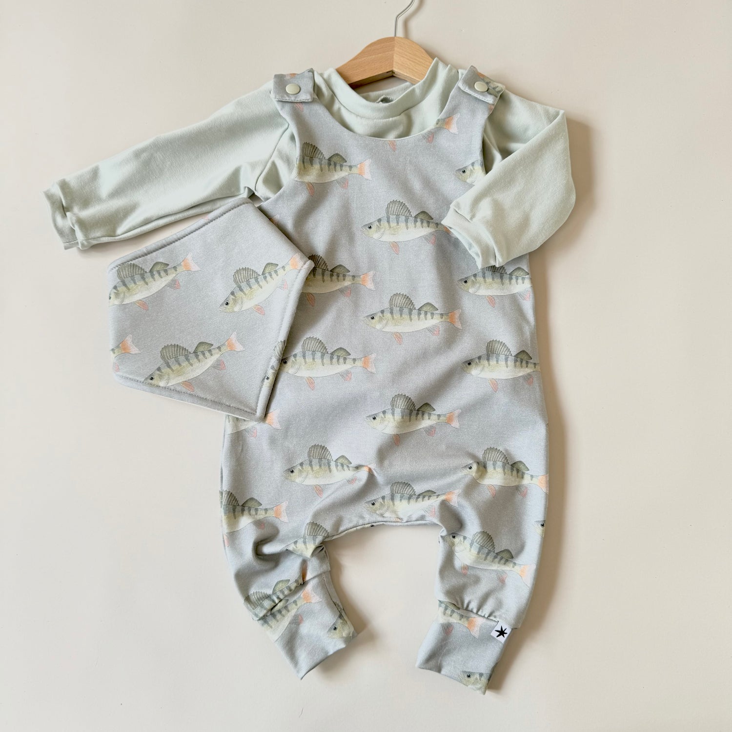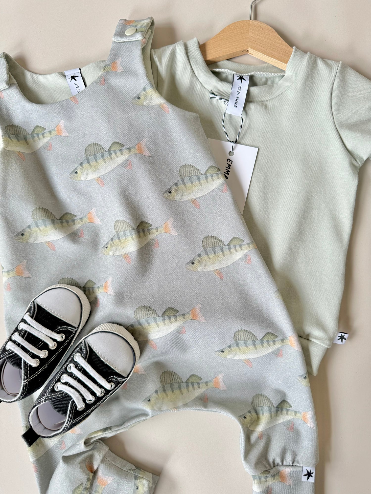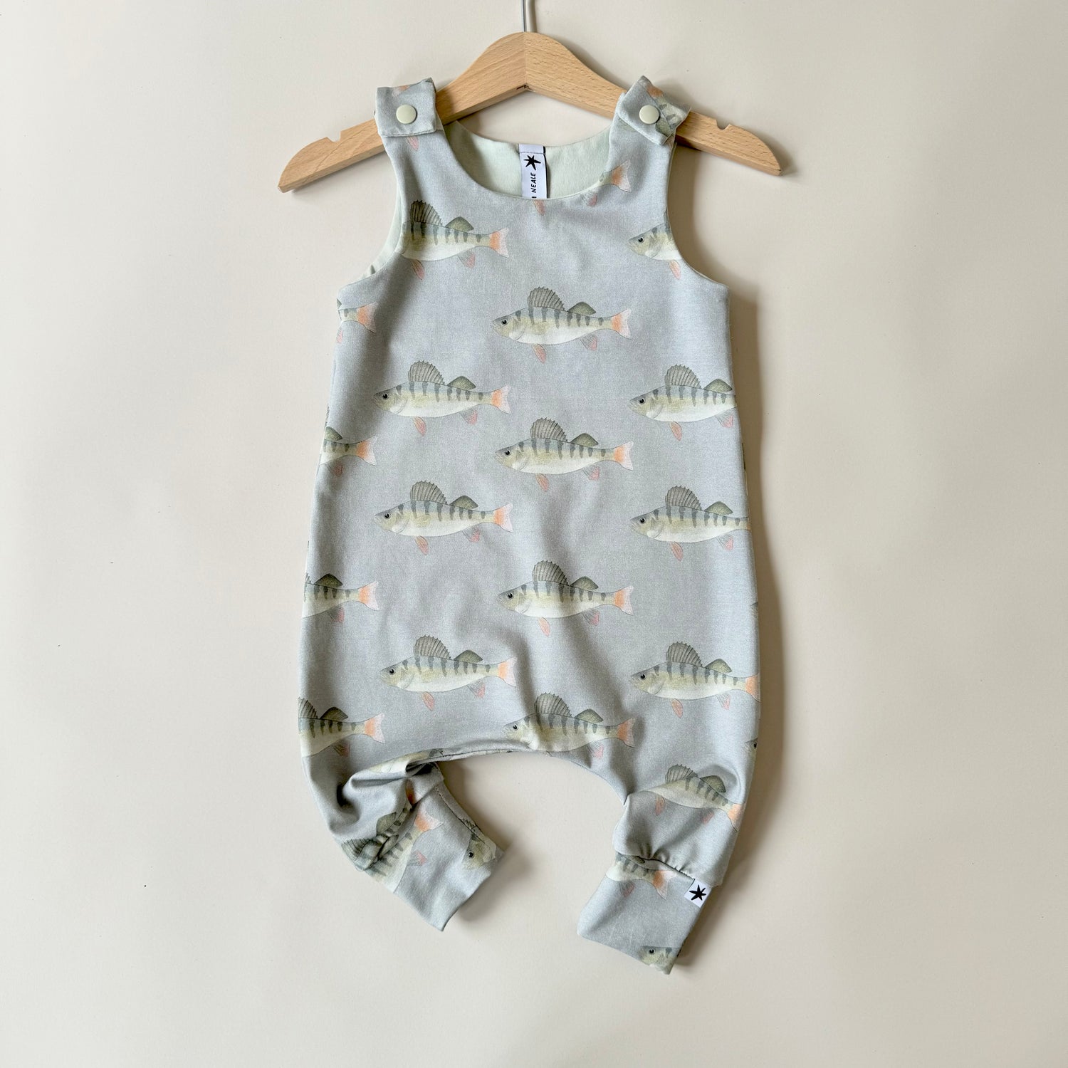 Luxury organic harem romper in designer organic cotton imported from Sweden.