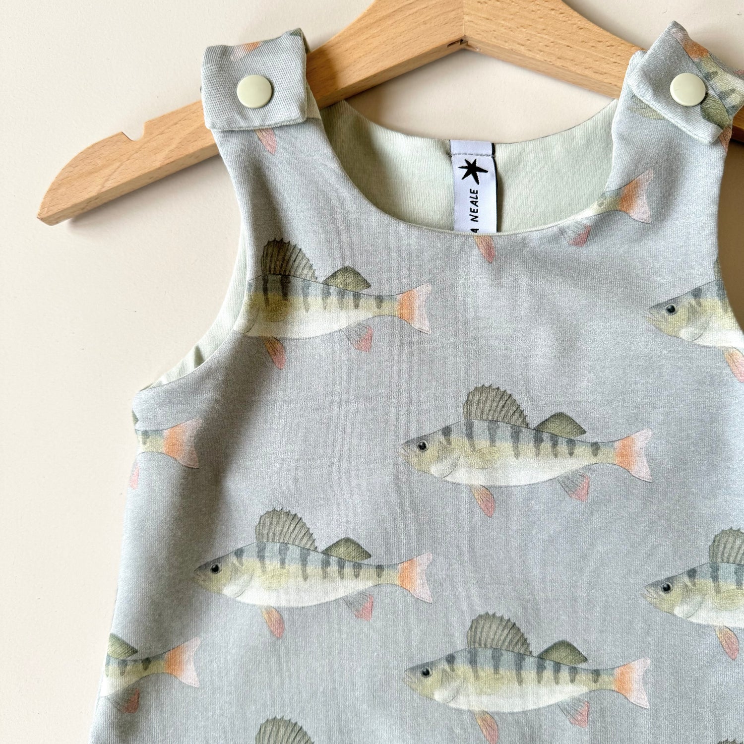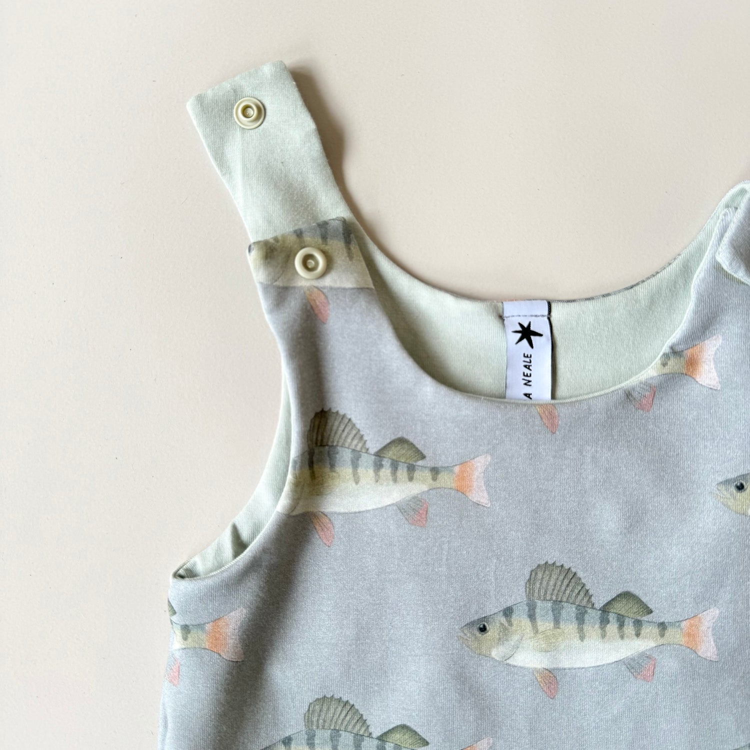 This cool harem romper is designed to be a loose fit and comfortable, easy for baby to wiggle, crawl or walk around in! The fabric is super soft and of the highest quality so lovely against even the most delicate skin. Finished with coordinating snap fasteners on the shoulder.
