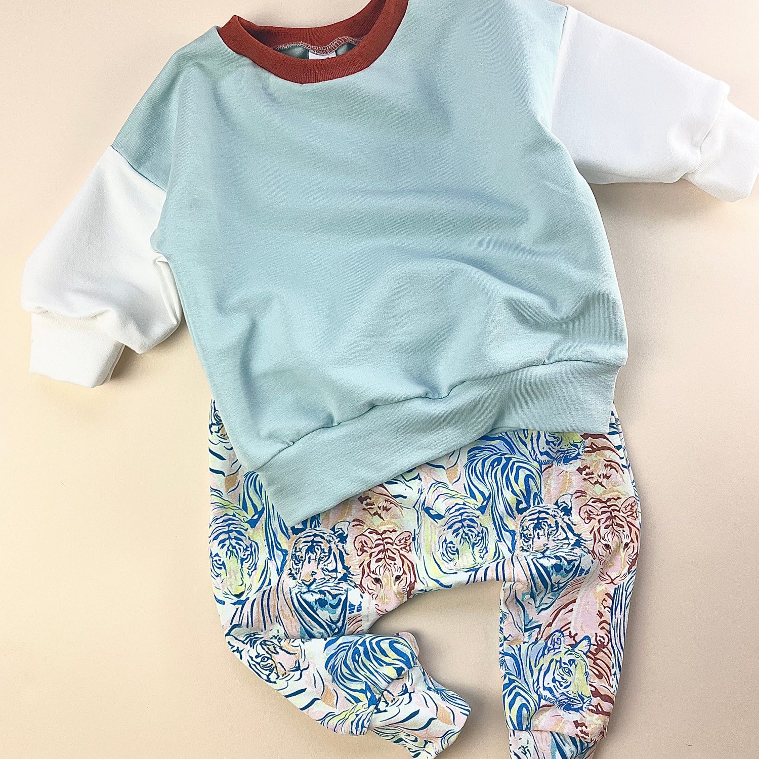 Long sleeve sweatshirt in our colour combo ‘pool’ - aqua, ecru and rust.