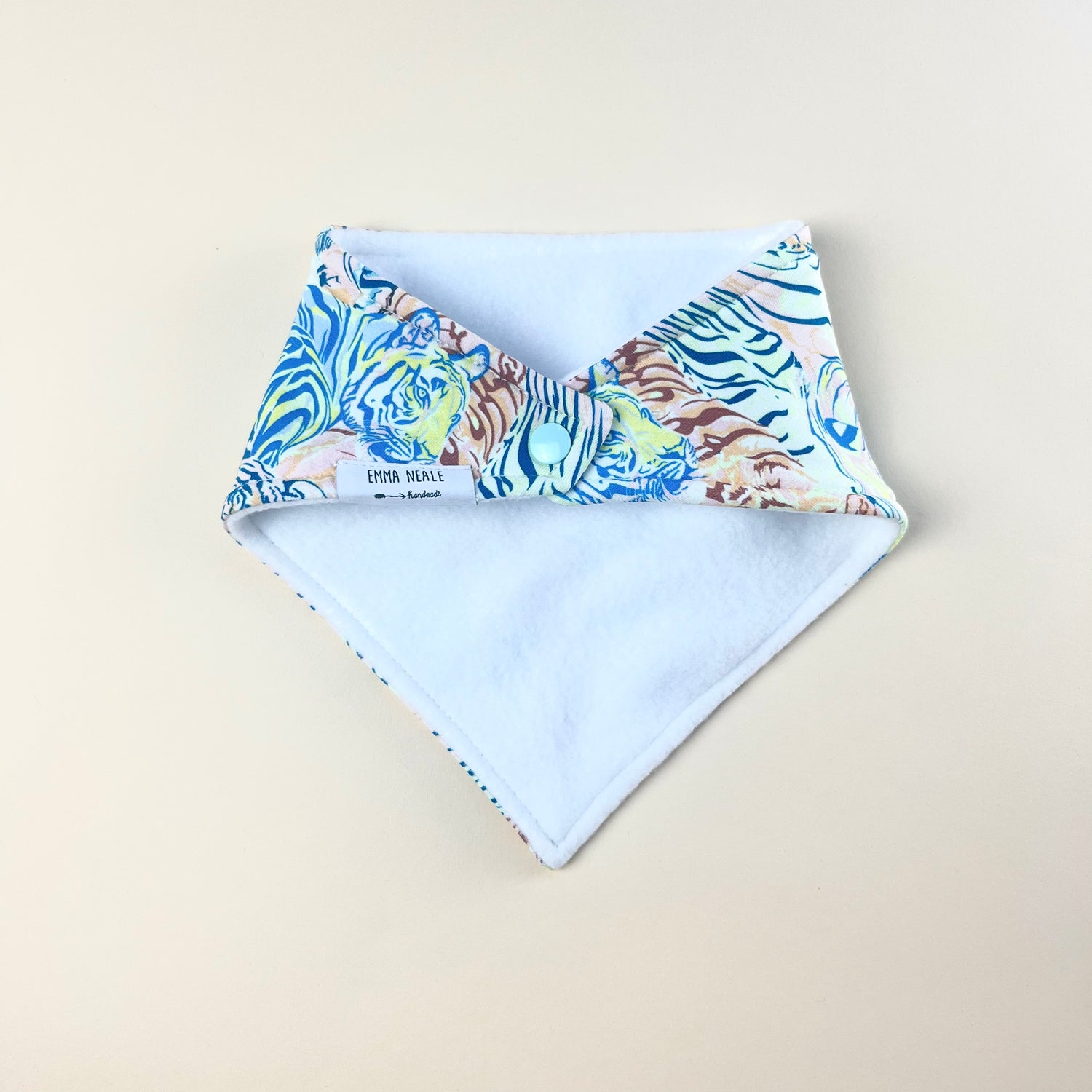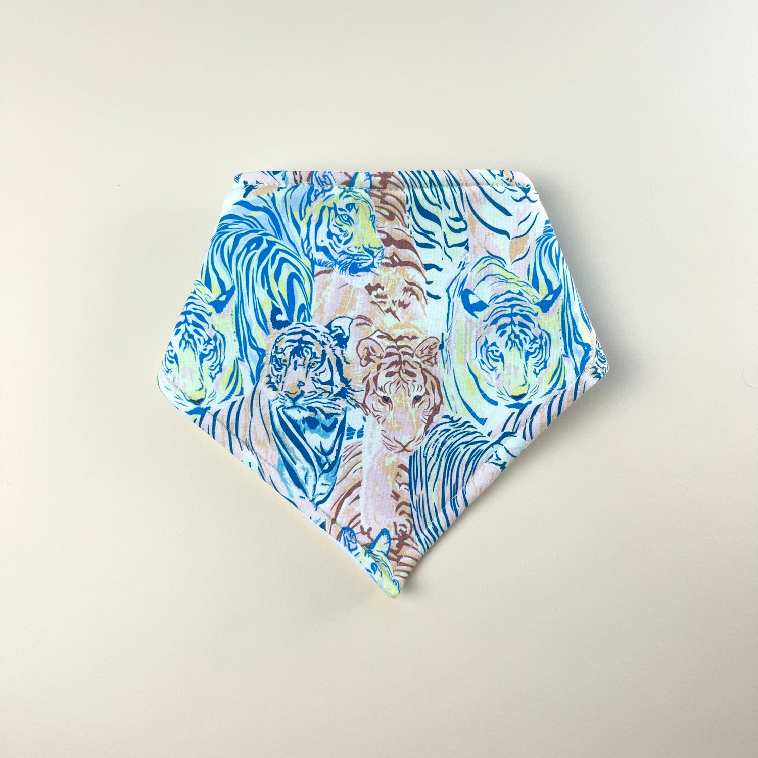 Wildly colourful tiger print bib.
