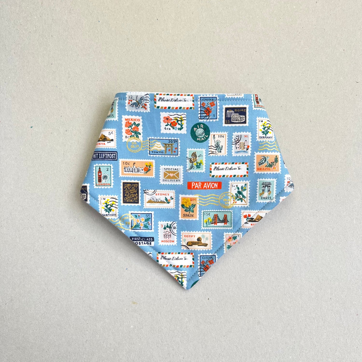 Beautiful postage stamp print bib, fabric from the Rifle Paper Co.