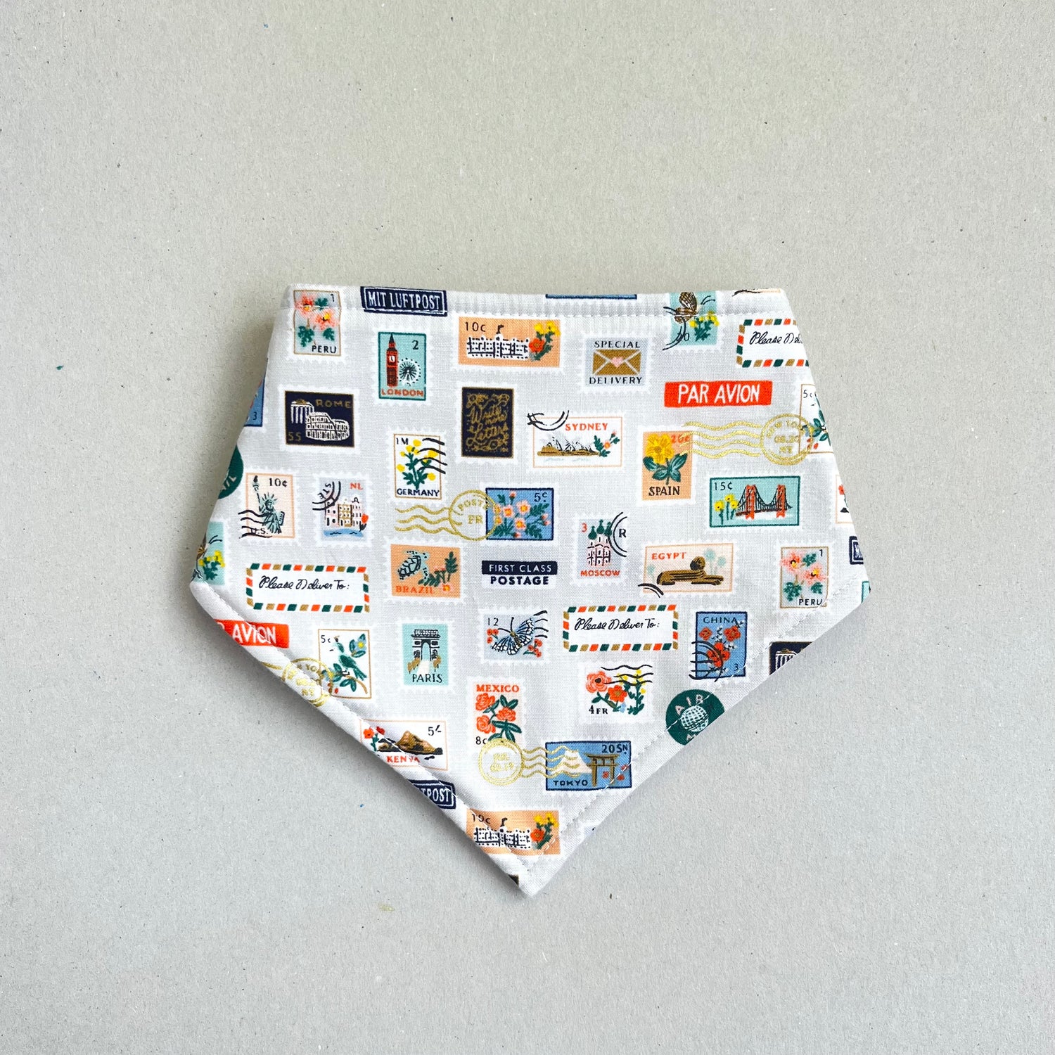 Beautiful postage stamp print bib, fabric from the Rifle Paper Co.