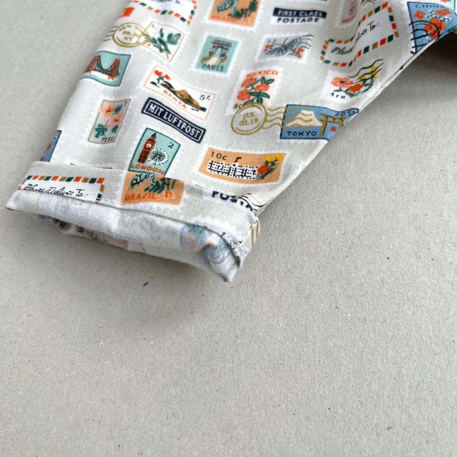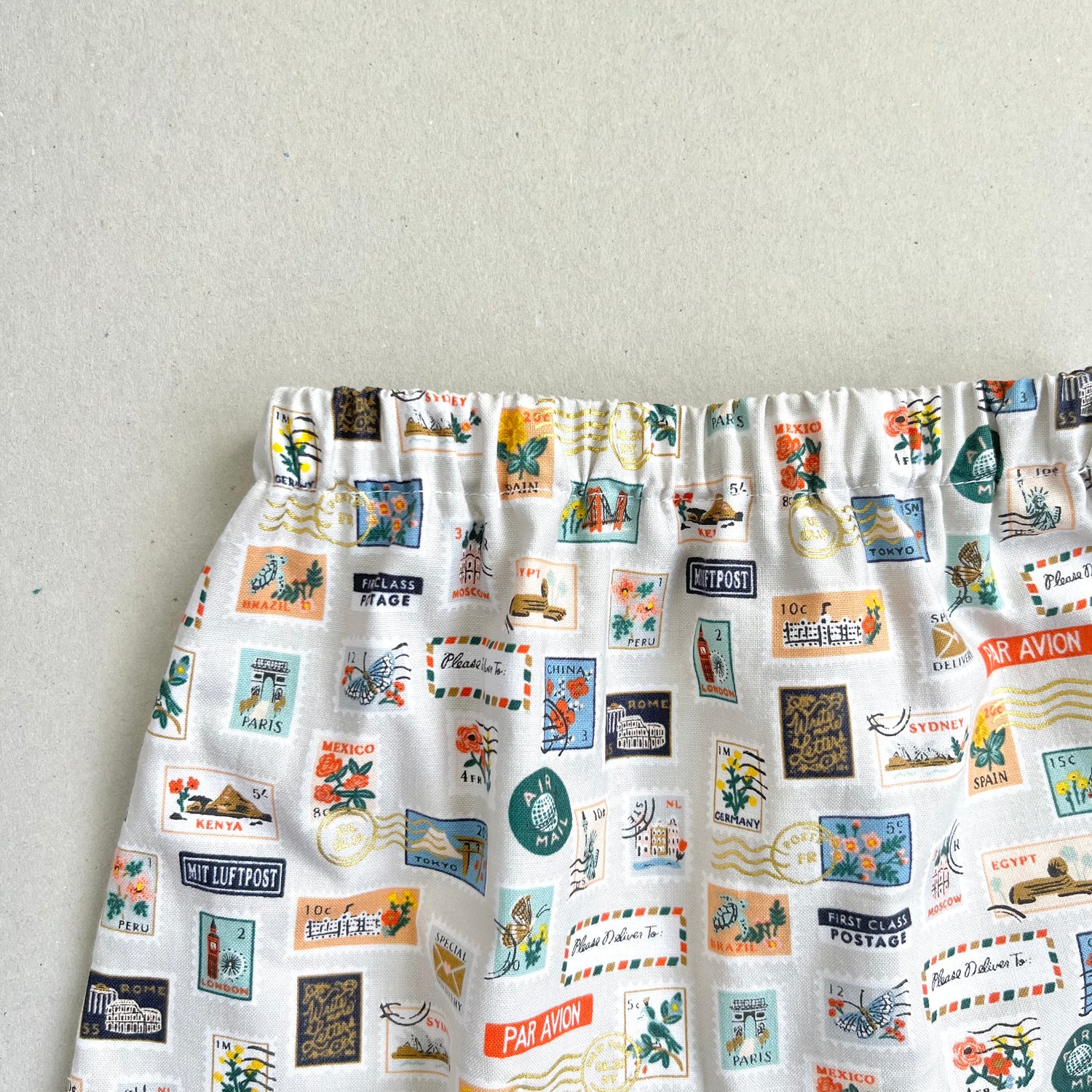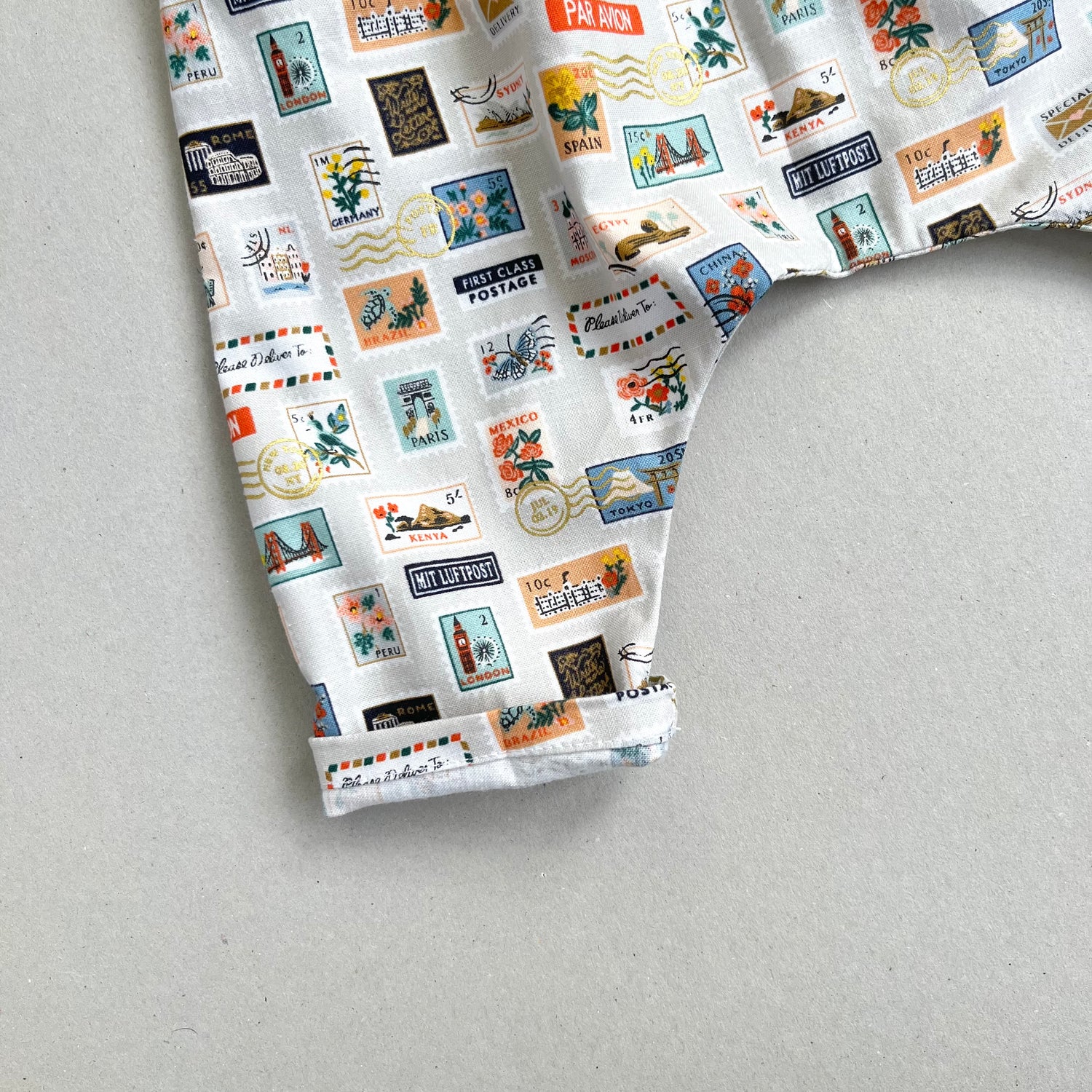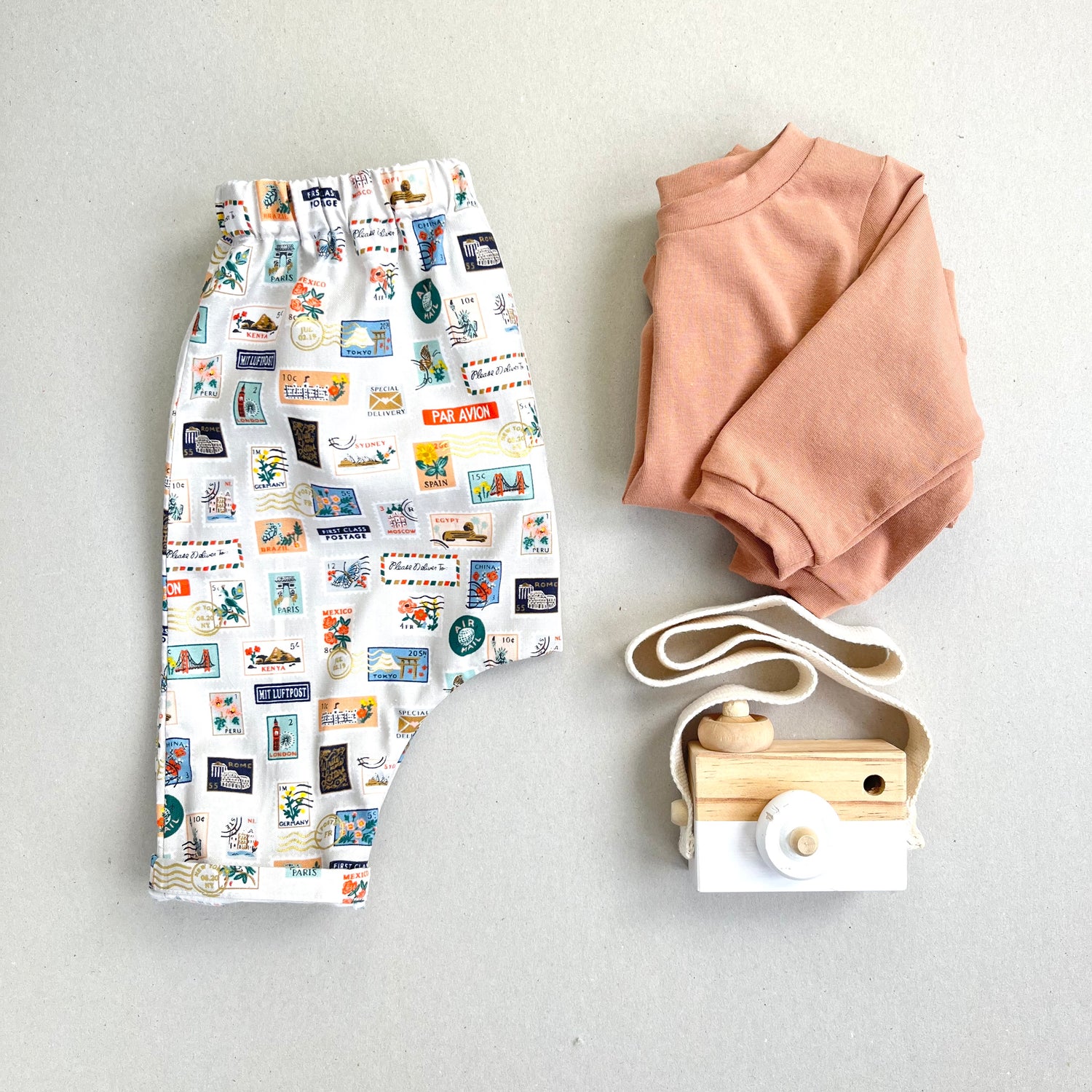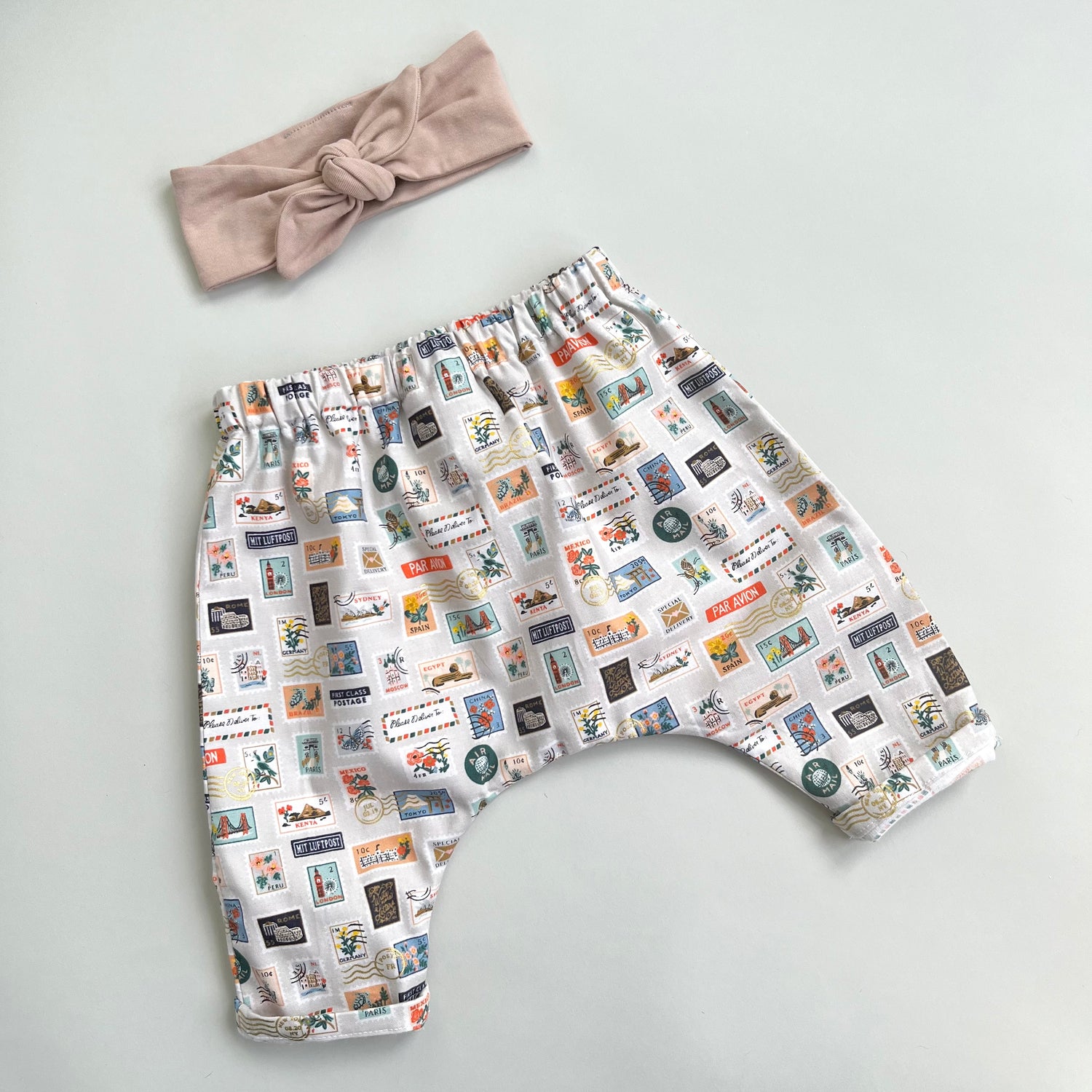 Cool little harem trousers in the Rifle Paper co's World Traveller metallic print.